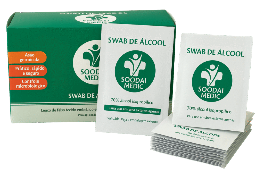 O Swab de Álcool Isopropílico 70% Soodai Medic é a solução prática, segura e eficaz para higienização da pele antes de procedimentos médicos, como aplicações endovenosas e subcutâneas. Embebido na quantidade ideal de álcool, garante assepsia de qualidade e ajuda a prevenir a contaminação bacteriana, proporcionando mais segurança para pacientes e profissionais de saúde.